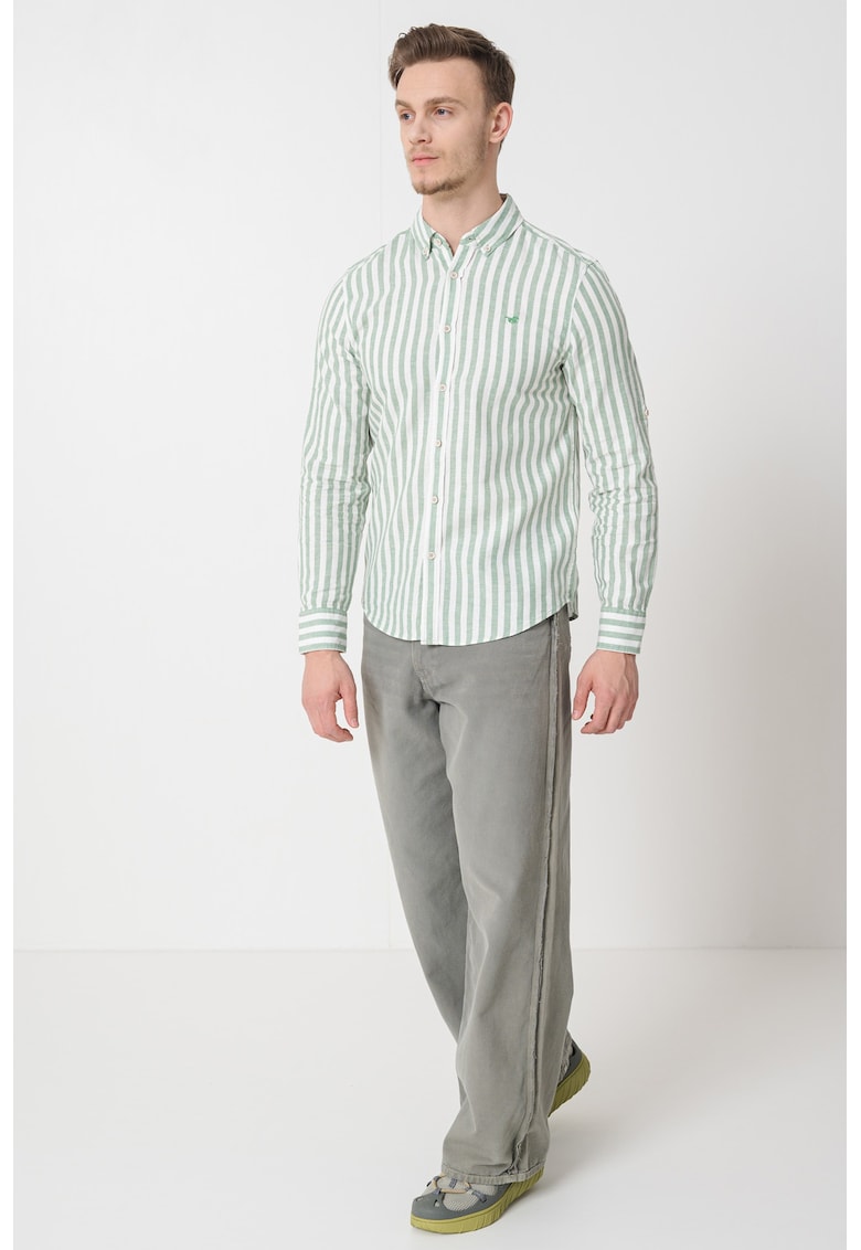 - in Imprimeu: dungi Stil: elegant Croiala: slim fit Lungime maneca: maneca lunga Sistem inchidere: nasturi Compozitie Exterior: 55% in