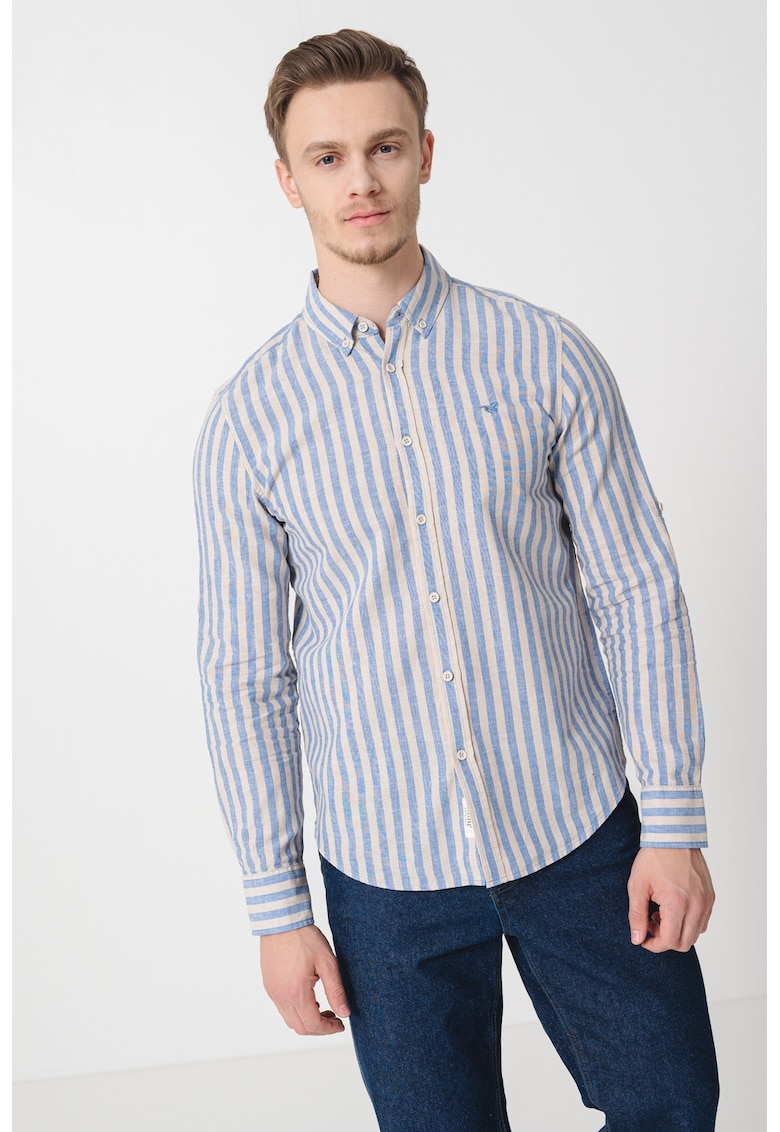 - in Imprimeu: dungi Stil: elegant Croiala: slim fit Lungime maneca: maneca lunga Sistem inchidere: nasturi Compozitie Exterior: 55% in