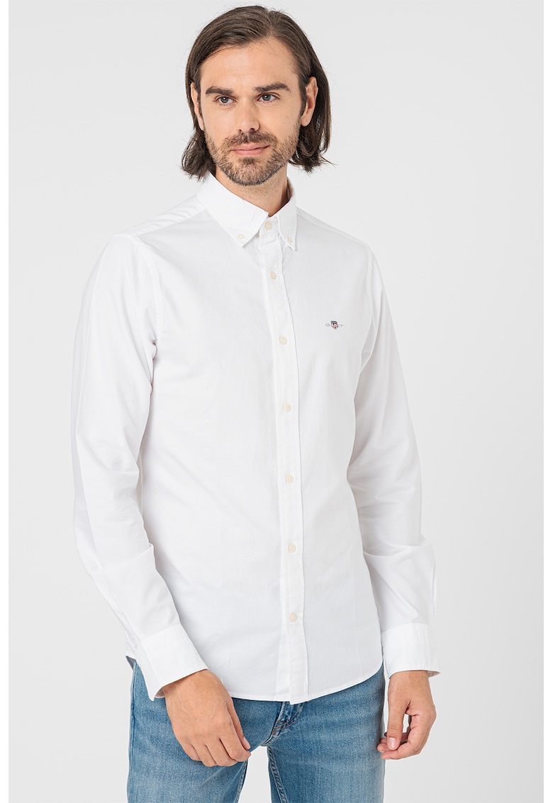 Caracteristici Culoare: alb Material: bumbac Imprimeu: uni Stil: elegant Croiala: slim fit Guler: ascutit Lungime maneca: maneca lunga Sistem inchidere: nasturi Compozitie Exterior: 100% bumbac Info model Modelul poarta un produs de marimea M. Marimi model: 195 cm inaltime