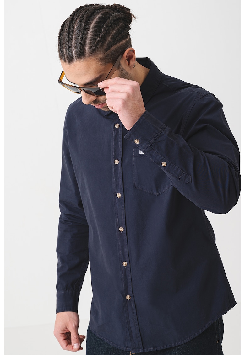- logo Stil: casual Croiala: slim fit Guler: clasic Maneci: cu mansete cu nasturi Lungime maneca: maneca lunga Buzunare: unul aplicat pe piept Sistem inchidere: nasturi Compozitie Exterior: 100% bumbac Info model Modelul poarta un produs de marimea M. Marimi model: 179 cm inaltime