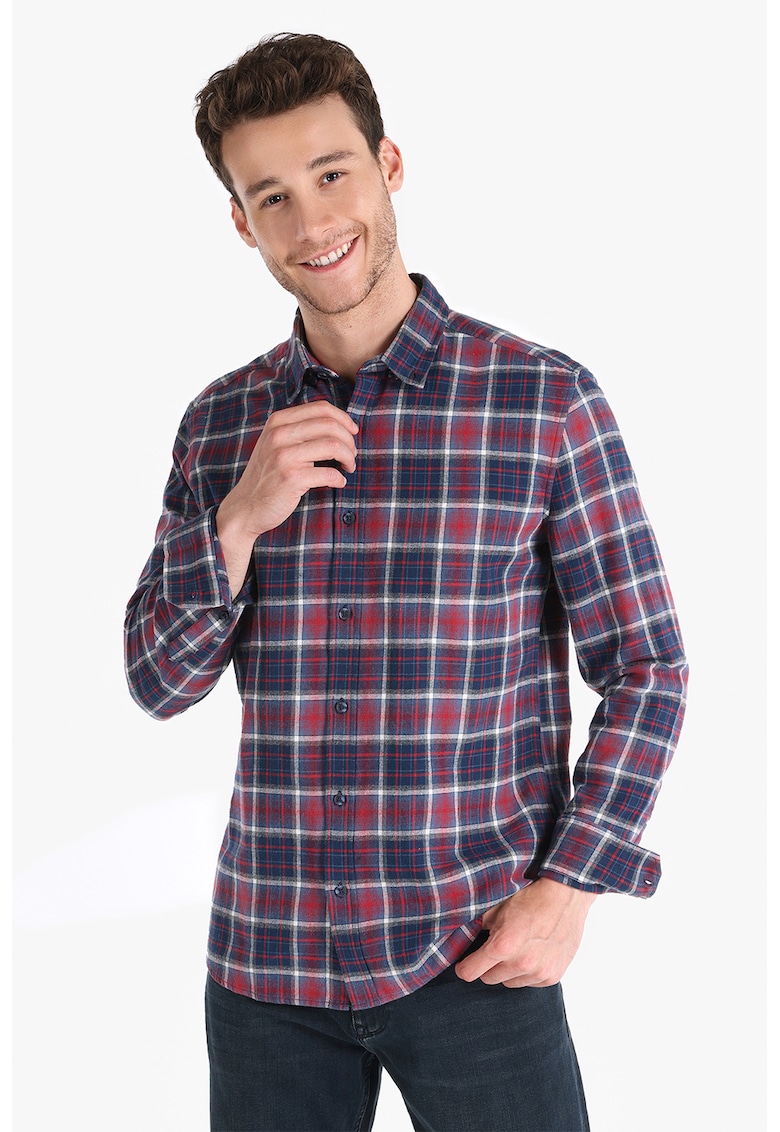 - bleumarin Material: bumbac Imprimeu: carouri Stil: casual Croiala: slim fit Guler: fixat cu nasturi Maneci: cu mansete cu nasturi Lungime maneca: maneca lunga Sistem inchidere: nasturi Compozitie Exterior: 100% bumbac