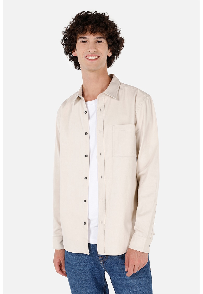 Caracteristici Culoare: alb fildes Material: bumbac Imprimeu: uni Stil: casual Croiala: slim fit Guler: clasic Maneci: cu mansete cu nasturi Lungime maneca: maneca lunga Buzunare: unul aplicat pe piept Sistem inchidere: nasturi Compozitie Exterior: 100% bumbac