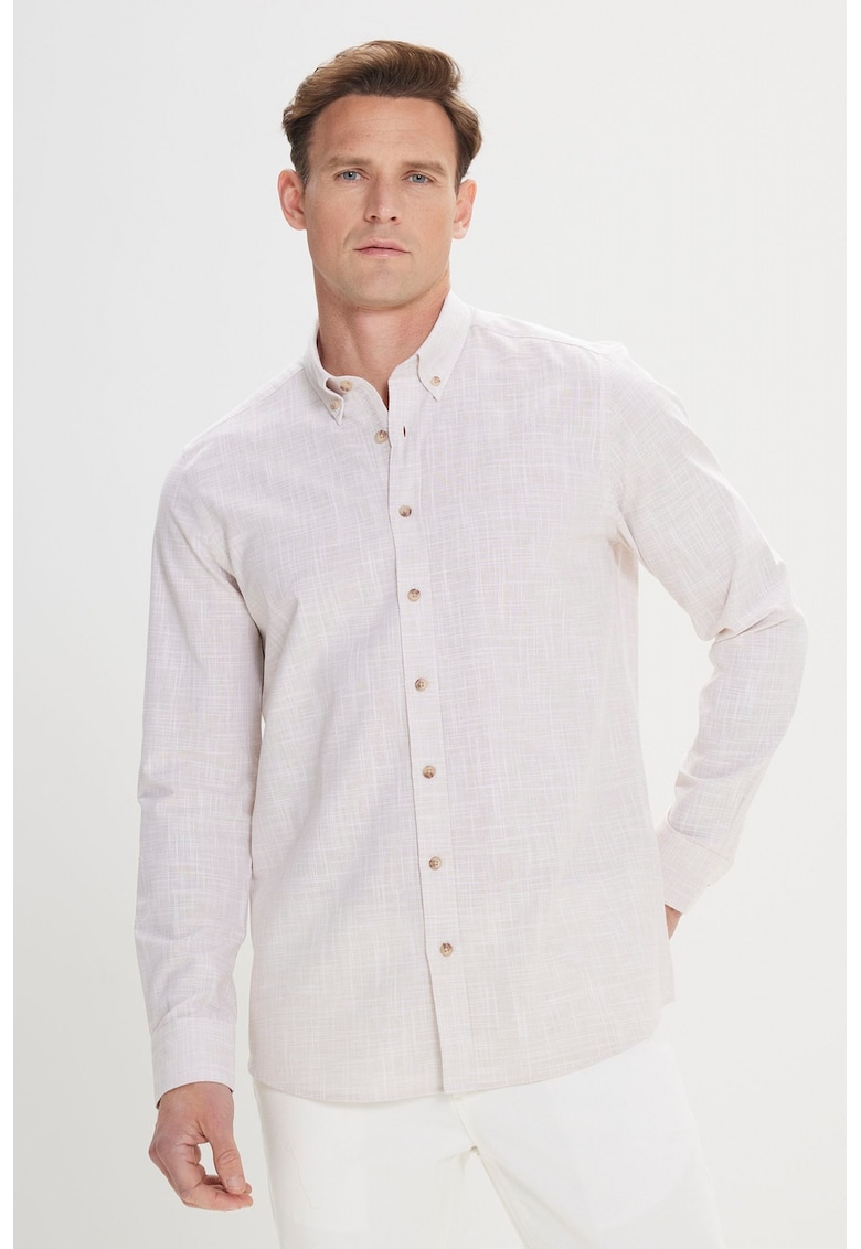 - transparent Material: bumbac Imprimeu: uni Stil: casual Croiala: slim fit Guler: fixat cu nasturi Maneci: cu mansete cu nasturi Lungime maneca: maneca lunga Sistem inchidere: nasturi Compozitie Exterior: 100% bumbac