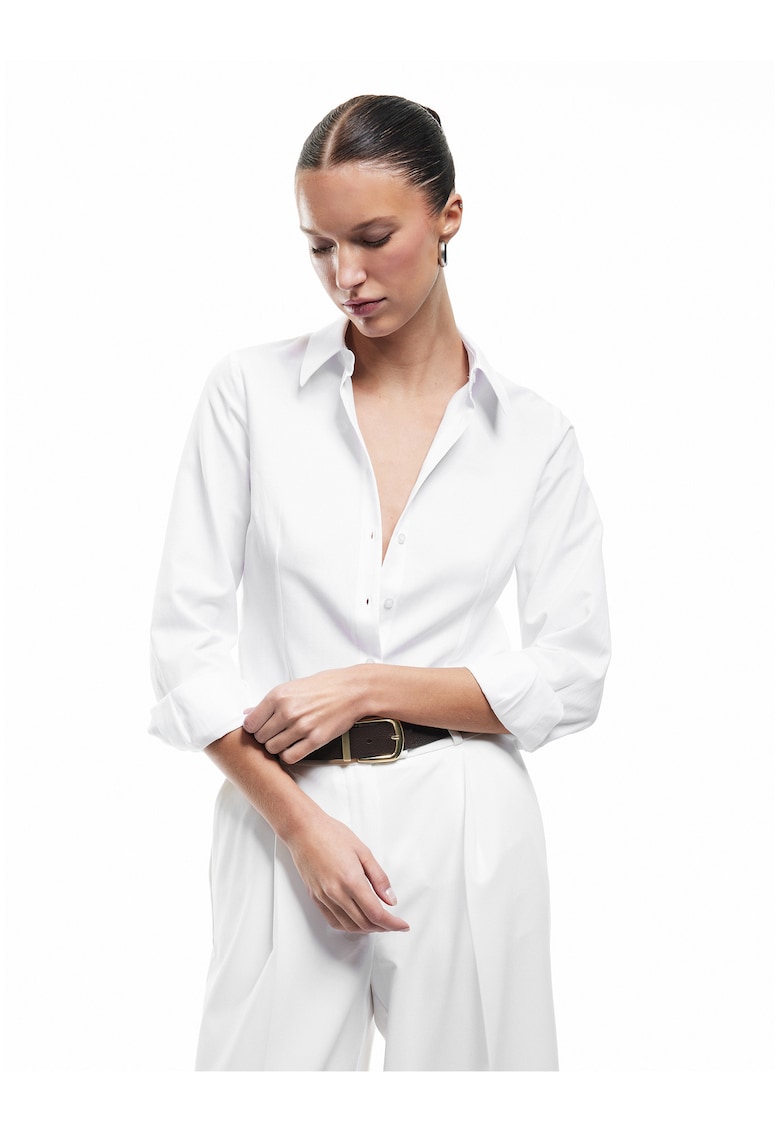 - bumbac Croiala: slim fit Guler: clasic Tip maneca: cu mansete cu nasturi Lungime maneca: maneca lunga Detalii: material poplin Sistem inchidere: nasturi Compozitie Exterior: bumbac