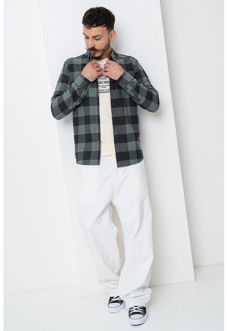 - gri antracit Material: bumbac Imprimeu: carouri Stil: casual Croiala: slim fit Guler: fixat cu nasturi Maneci: mansete cu nasturi Lungime maneca: maneca lunga Sistem inchidere: nasturi Compozitie Exterior: 100% bumbac Info model Modelul poarta un produs de marimea M. Marimi model: 187 cm inaltime