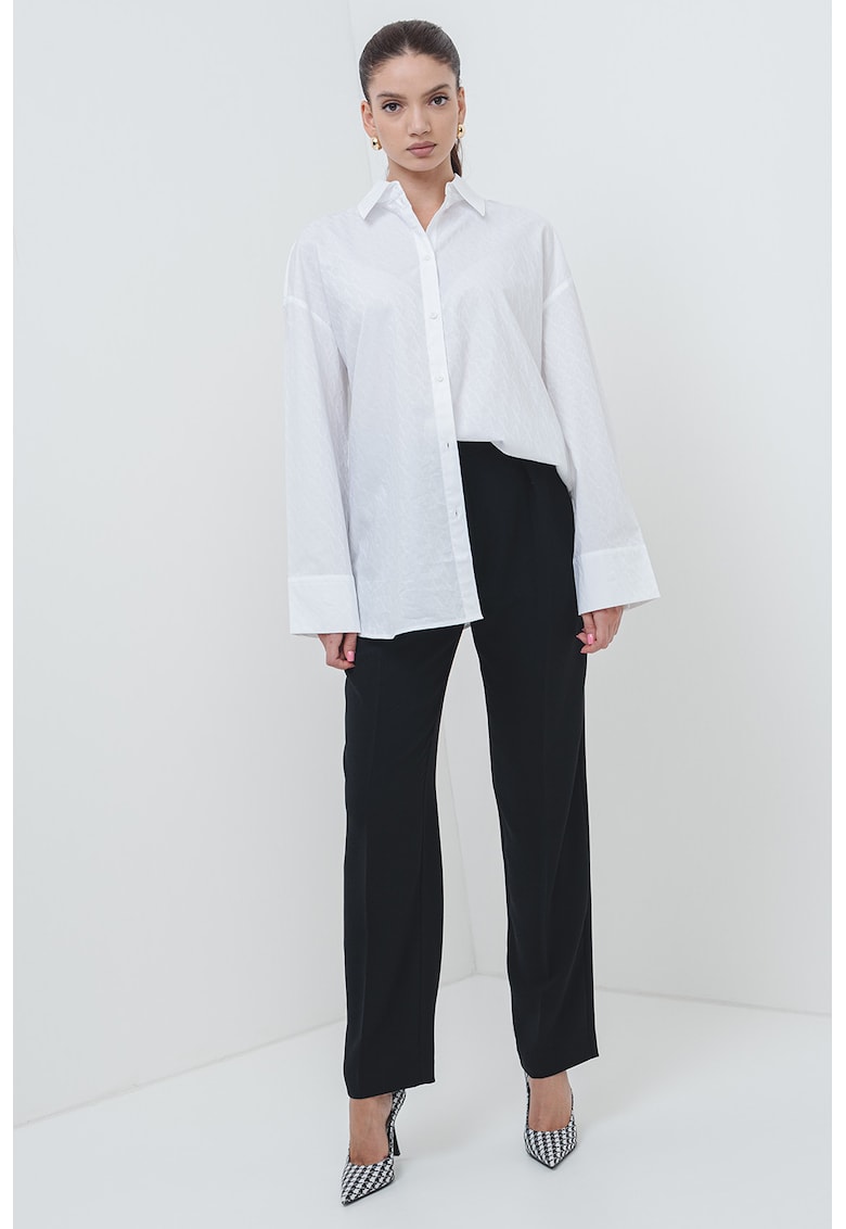 Caracteristici Culoare: alb Imprimeu: uni Stil: casual Material: bumbac Croiala: supradimensionat Guler: ascutit Tip maneca: ampla Lungime maneca: maneca lunga Sistem inchidere: nasturi Compozitie Exterior: 100% bumbac Info model Modelul poarta un produs de marimea S. Marimi model: 175 cm inaltime