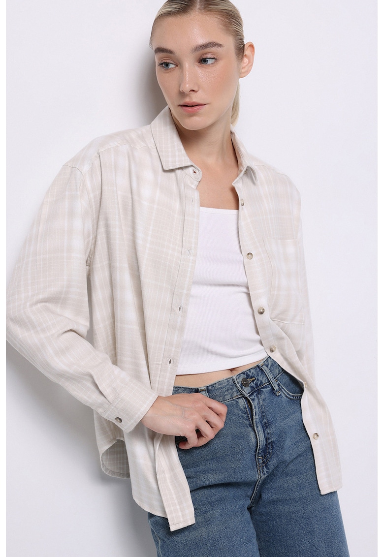 - crem Imprimeu: carouri Stil: casual Material: poliester