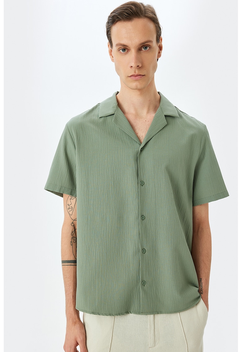 - bumbac Imprimeu: uni Stil: casual Croiala: regular fit Guler: cu revere Lungime maneca: maneca scurta Detalii: aspect texturat Sistem inchidere: nasturi Compozitie Exterior: 58% bumbac