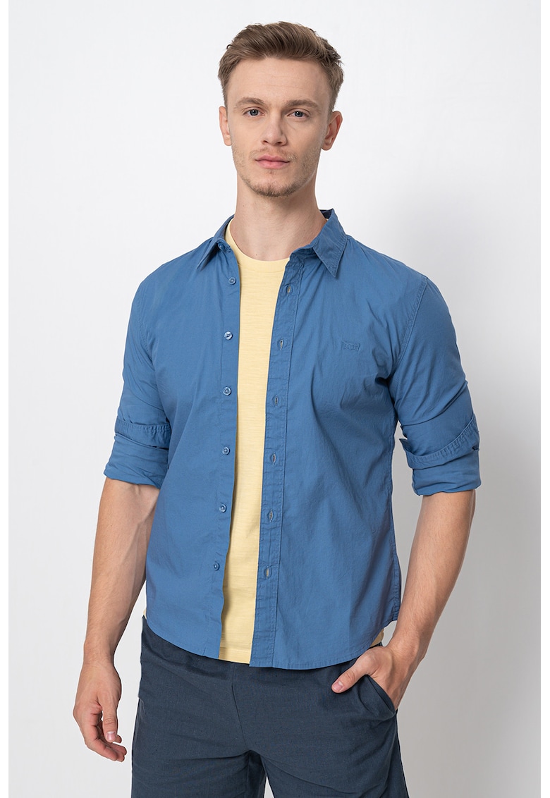 Caracteristici Culoare: petrol Material: bumbac Imprimeu: uni Stil: casual Croiala: slim fit Guler: clasic Maneci: cu mansete cu nasturi Lungime maneca: maneca lunga Sistem inchidere: nasturi Compozitie Exterior: 98% bumbac