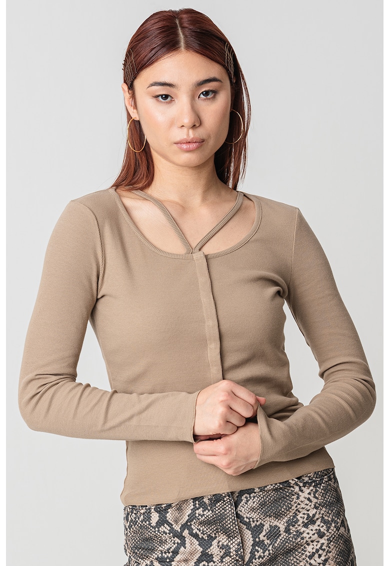 Caracteristici Tip produs: cardigan Culoare: caramel Imprimeu: uni Material: bumbac Model: decolteu la baza gatului Croiala: crop Sistem inchidere: capse Lungime maneca: maneca lunga Detalii: aspect striat Compozitie Exterior: 95% bumbac