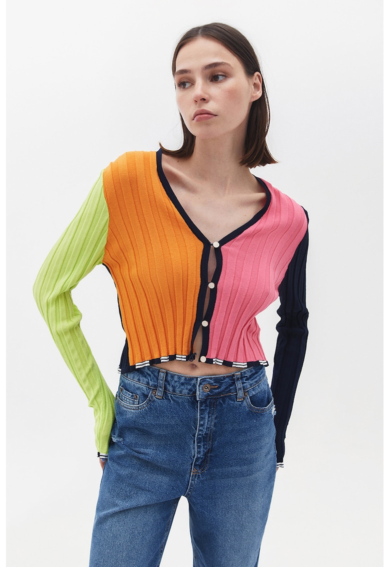 - poliamida Model: in v Croiala: crop Sistem inchidere: nasturi Decolteu: in v Lungime maneca: maneca lunga Compozitie Exterior: 63% viscoza