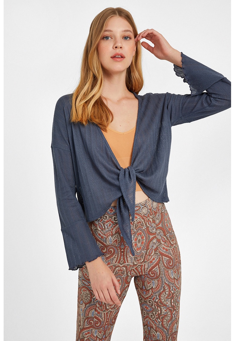 Caracteristici Tip produs: cardigan Culoare: albastru prafuit Imprimeu: uni Material: poliester