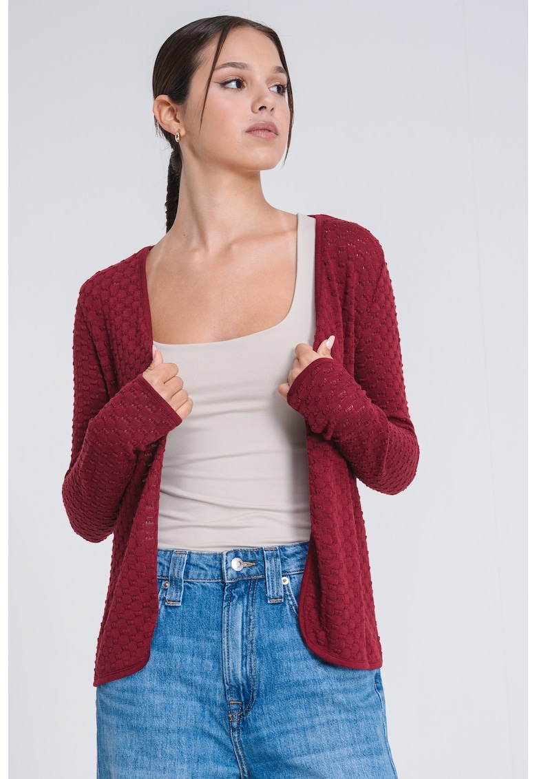 Caracteristici Tip produs: cardigan Culoare: visiniu Imprimeu: uni Material: poliester