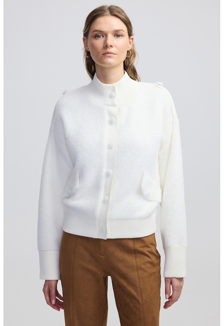 Caracteristici Tip produs: cardigan Culoare: alb Imprimeu: uni Material: poliester