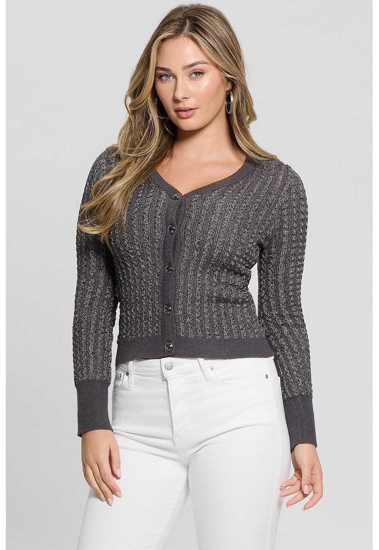 Caracteristici Tip produs: cardigan Culoare: gri inchis Imprimeu: uni Material: poliester