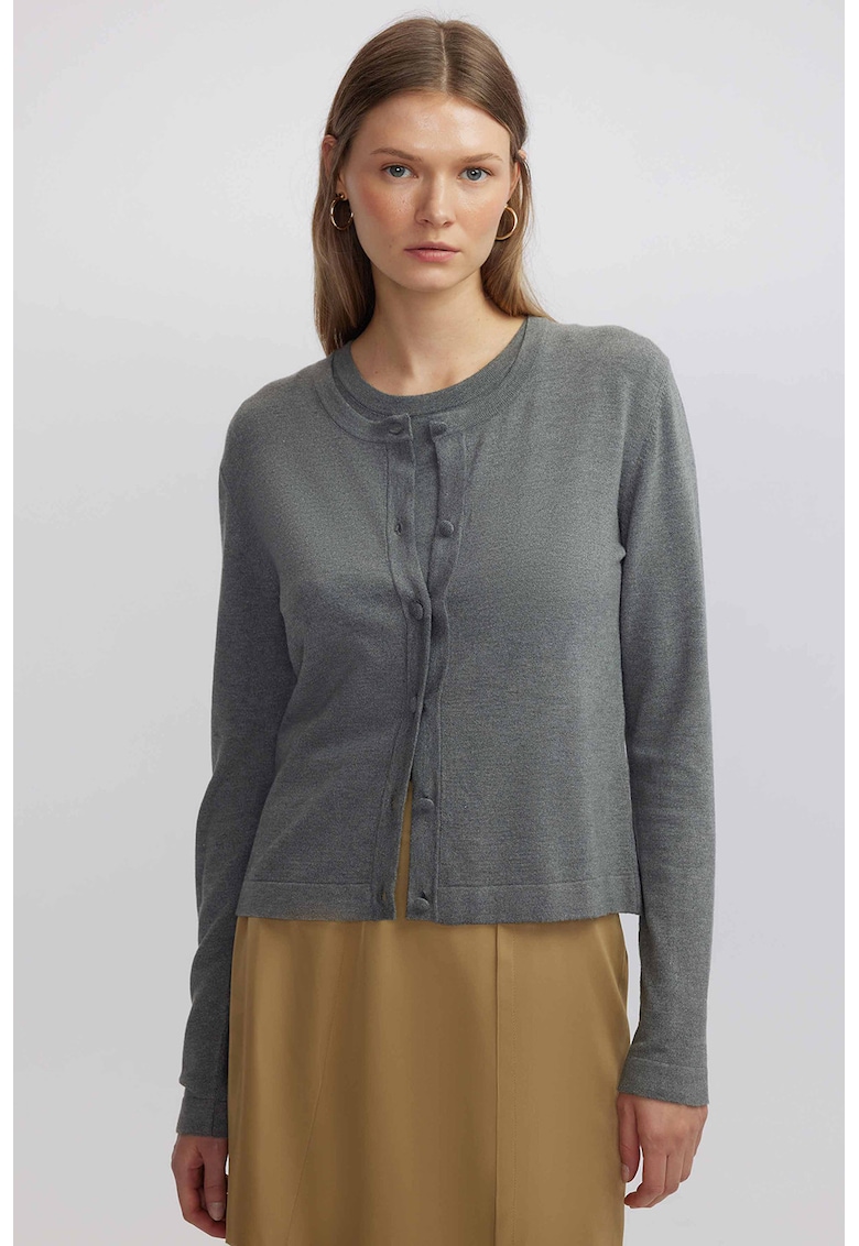 Caracteristici Tip produs: cardigan Culoare: gri Imprimeu: uni Material: sintetic