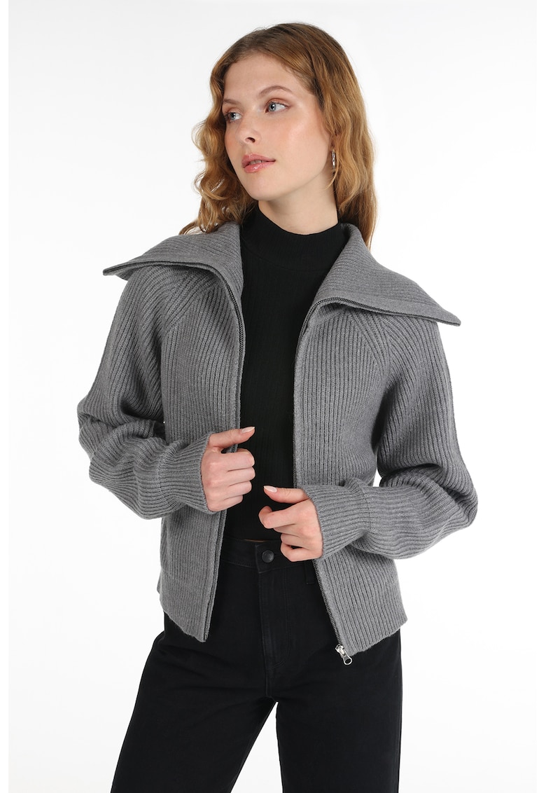 Caracteristici Tip produs: cardigan Culoare: gri inchis Material: poliester
