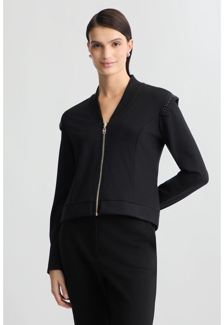 - viscoza Model: in v Croiala: regular fit Sistem inchidere: fermoar Lungime maneca: maneca lunga Detalii: strasuri Compozitie Exterior: poliamida