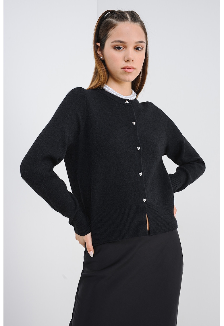 Caracteristici Tip produs: cardigan Culoare: negru Imprimeu: uni Material: sintetic Model: rotund Croiala: regular fit Sistem inchidere: nasturi Lungime maneca: maneca lunga Compozitie Exterior: 34% poliester reciclat