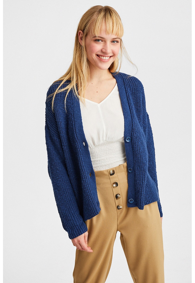 Caracteristici Tip produs: cardigan Culoare: albastru royal Imprimeu: uni Material: sintetic