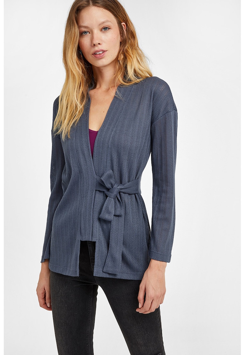 Caracteristici Tip produs: cardigan Culoare: albastru prafuit Imprimeu: uni Material: poliester