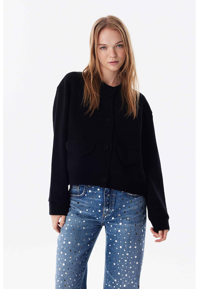Caracteristici Tip produs: cardigan Culoare: negru Imprimeu: uni Material: sintetic