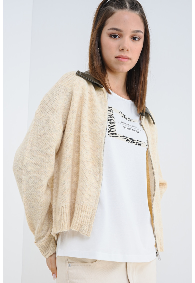Caracteristici Tip produs: cardigan Culoare: crem Imprimeu: uni Material: poliester