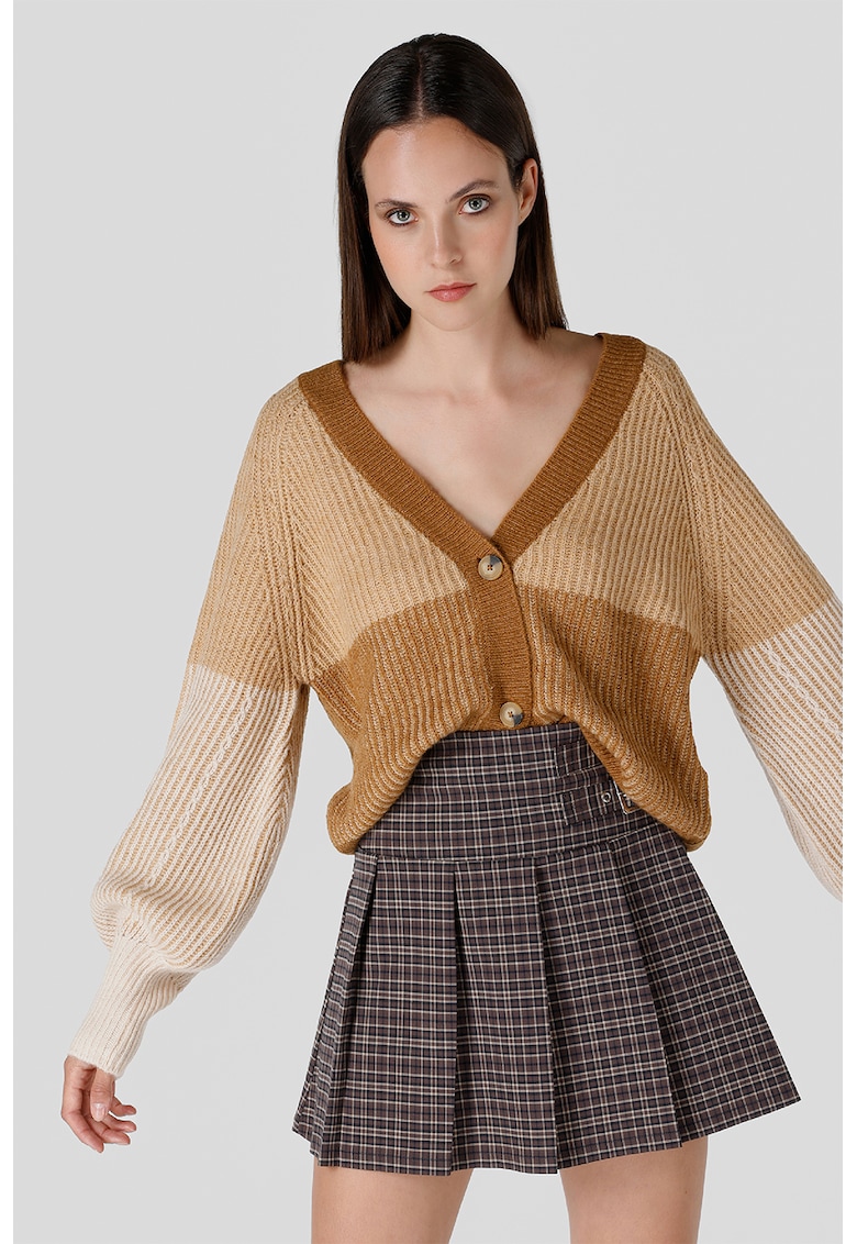 - acril Model: in v Croiala: lejer Sistem inchidere: nasturi Decolteu: in v Lungime maneca: maneca lunga Detalii: aspect colorblock Compozitie Exterior: 44% acrilic