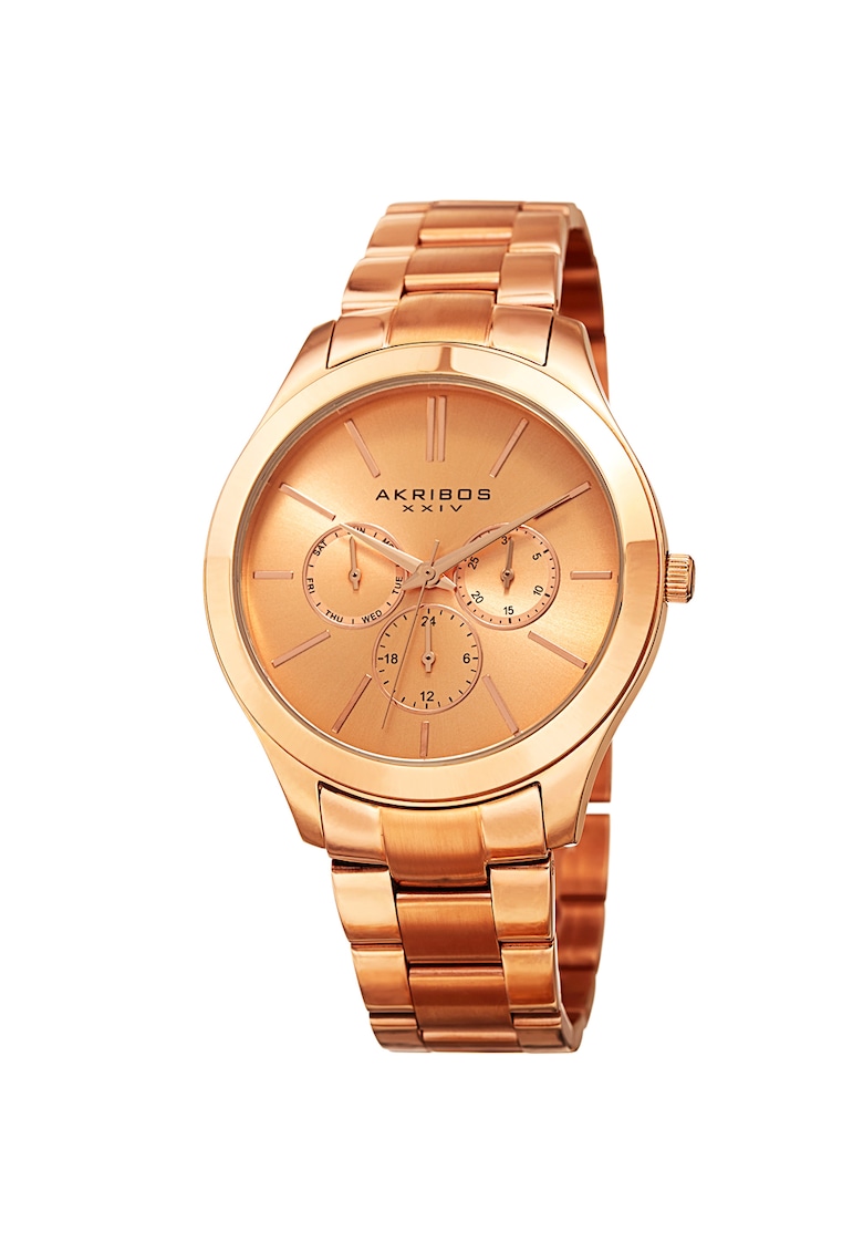 - secunda Rezistenta la apa: 5 atm Cadran Material geam: cristal mineral Tip citire cadran: linii Carcasa Forma carcasa: rotunda Material carcasa: inox Culoare carcasa: auriu rose Curea/bratara Tip: bratara Material curea/bratara: inox Culoare curea/bratara: auriu rose