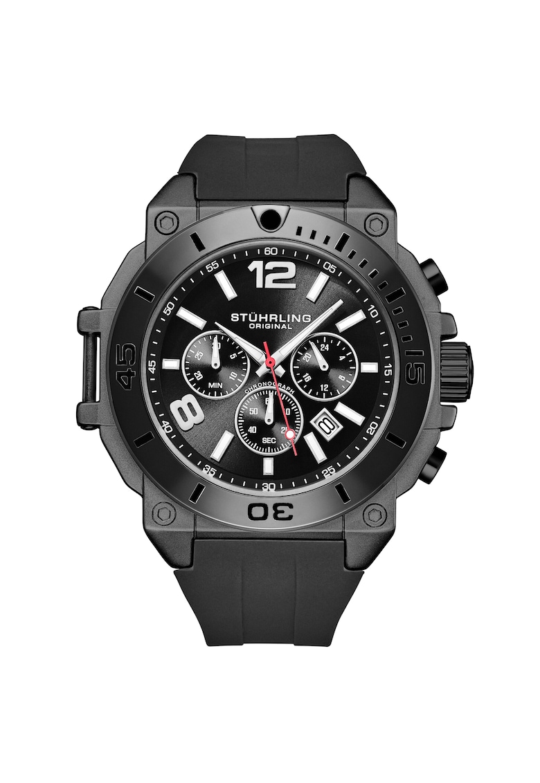 - cronograf Rezistenta la apa: 10 atm Cadran Material geam: cristal mineral Tip citire cadran: linii Carcasa Forma carcasa: alta Material carcasa: aliaj Culoare carcasa: negru Curea/bratara Tip: curea Material curea/bratara: silicon Culoare curea/bratara: negru