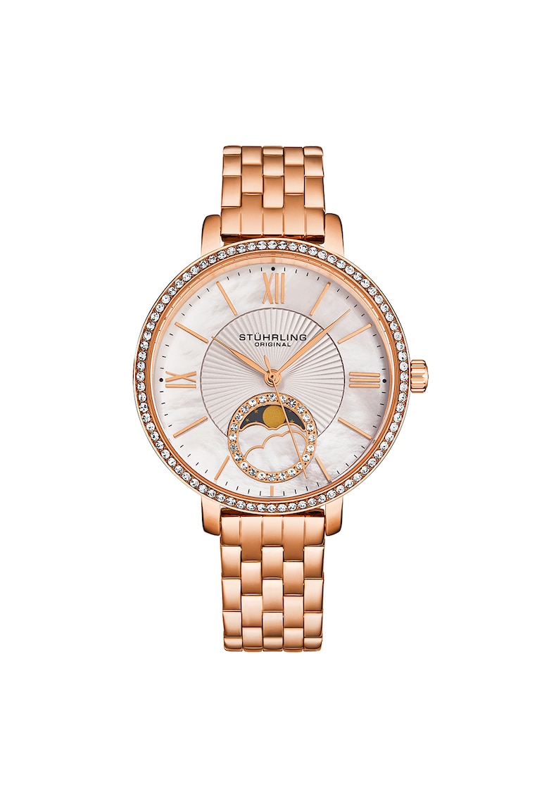 - cadran sidefat Cadran Material geam: cristal mineral Tip citire cadran: cifre romane Carcasa Forma carcasa: rotunda Material carcasa: aliaj Culoare carcasa: auriu rose Diametru carcasa: 36 mm Curea/bratara Tip: bratara Material curea/bratara: inox Culoare curea/bratara: auriu rose