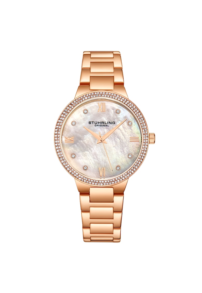 - secunda Rezistenta la apa: 3 atm Cadran Material geam: cristal mineral Tip citire cadran: puncte Carcasa Forma carcasa: rotunda Material carcasa: inox Culoare carcasa: auriu rose Curea/bratara Tip: bratara Material curea/bratara: inox Culoare curea/bratara: auriu rose