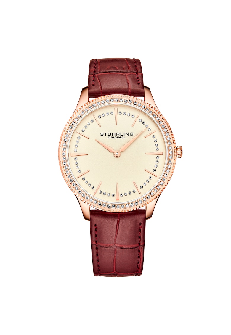 - minut Rezistenta la apa: 3 atm Cadran Material geam: cristal mineral Tip citire cadran: linii Carcasa Forma carcasa: rotunda Material carcasa: inox Culoare carcasa: auriu rose Curea/bratara Tip: curea Material curea/bratara: piele naturala Culoare curea/bratara: rosu caramiziu
