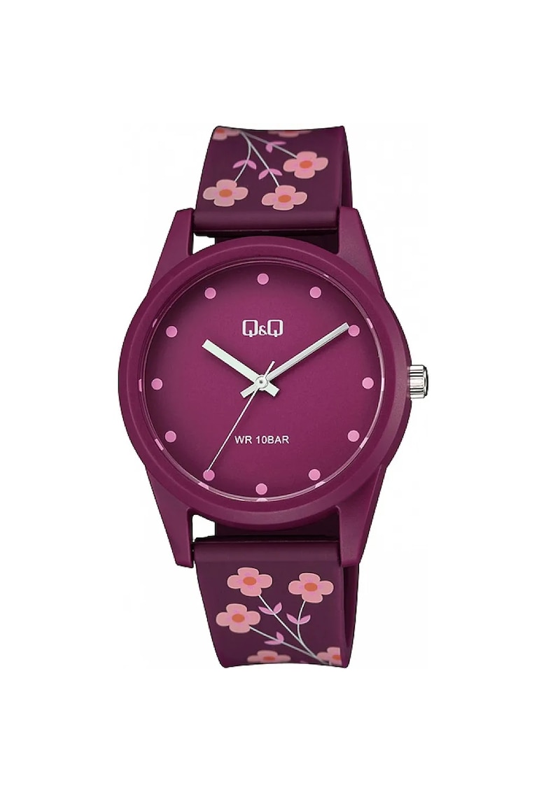 Caracteristici Tip mecanism: quartz Provenienta mecanism: japonia Tip display: analog Stil: casual Functii: ora Rezistenta la apa: 10 atm Cadran Material geam: plastic Tip citire cadran: puncte Carcasa Forma carcasa: rotunda Material carcasa: plastic Culoare carcasa: rosu Curea/bratara Tip: curea Material curea/bratara: poliuretan Culoare curea/bratara: rosu