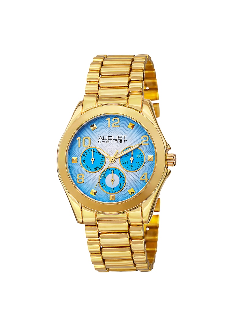 - albastru deschis Tip citire cadran: cifre arabe Carcasa Forma carcasa: rotunda Material carcasa: aliaj Culoare carcasa: auriu Curea/bratara Tip: bratara Material curea/bratara: aliaj Culoare curea/bratara: auriu