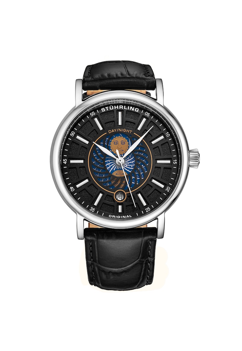 - indicator am/pm Rezistenta la apa: 5 atm Cadran Material geam: cristal mineral Tip citire cadran: linii Carcasa Forma carcasa: rotunda Material carcasa: inox Culoare carcasa: argintiu Curea/bratara Tip: curea Material curea/bratara: piele naturala Culoare curea/bratara: negru