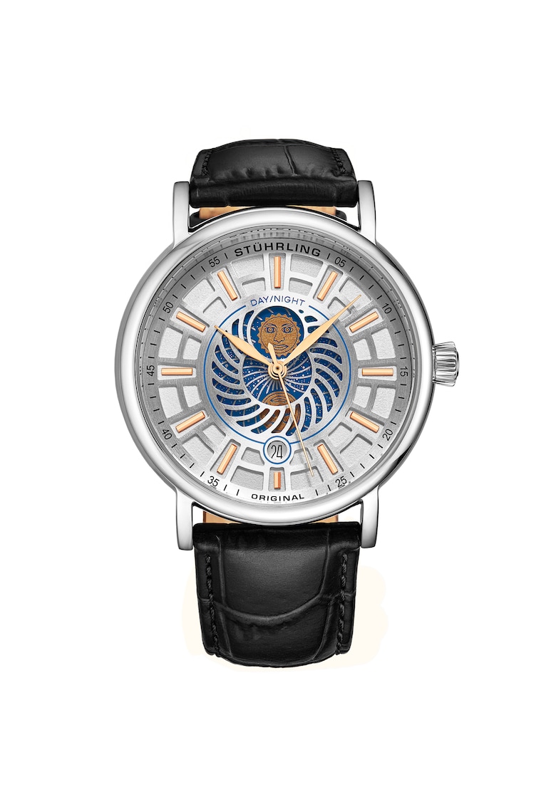 - indicator am/pm Rezistenta la apa: 5 atm Cadran Material geam: cristal mineral Tip citire cadran: linii Carcasa Forma carcasa: rotunda Material carcasa: inox Culoare carcasa: argintiu Curea/bratara Tip: curea Material curea/bratara: piele naturala Culoare curea/bratara: negru