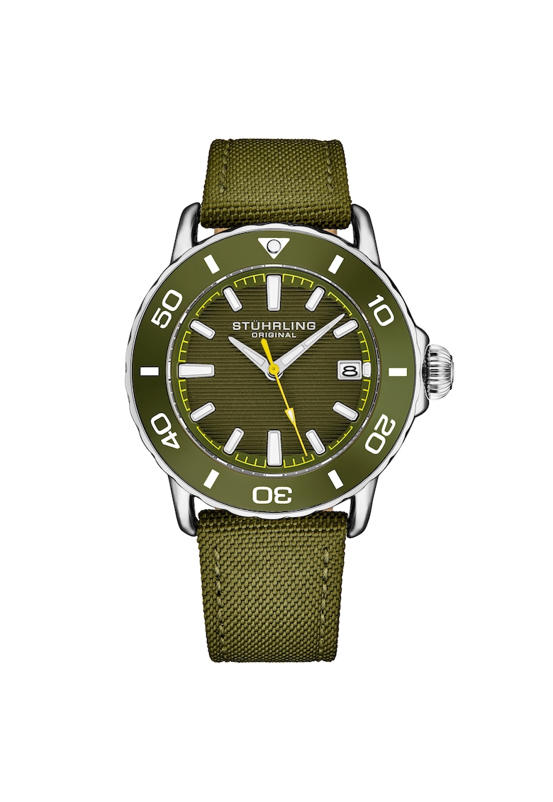 - afisare data Rezistenta la apa: 10 atm Cadran Material geam: cristal mineral Tip citire cadran: linii Carcasa Forma carcasa: rotunda Material carcasa: aliaj Culoare carcasa: argintiu Curea/bratara Tip: curea Material curea/bratara: nylon Culoare curea/bratara: verde olive