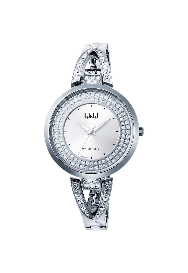 Caracteristici Tip mecanism: quartz Provenienta mecanism: japonia Tip display: analog Stil: elegant Functii: ora Rezistenta la apa: 3 atm Cadran Material geam: cristal mineral Tip citire cadran: puncte Carcasa Forma carcasa: rotunda Material carcasa: metal Culoare carcasa: argintiu Curea/bratara Tip: bratara Material curea/bratara: metal Culoare curea/bratara: argintiu