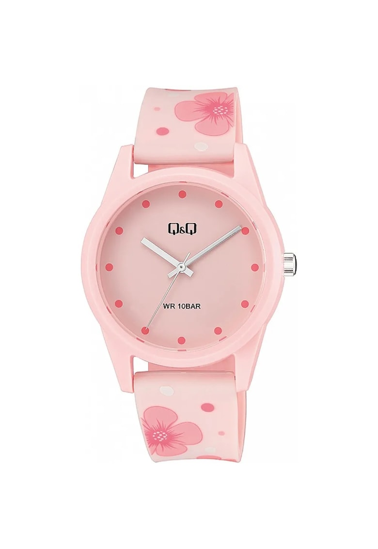 Caracteristici Tip mecanism: quartz Provenienta mecanism: japonia Tip display: analog Stil: casual Functii: ora Rezistenta la apa: 10 atm Cadran Material geam: plastic Tip citire cadran: puncte Carcasa Forma carcasa: rotunda Material carcasa: plastic Culoare carcasa: roz Curea/bratara Tip: curea Material curea/bratara: poliuretan Culoare curea/bratara: roz