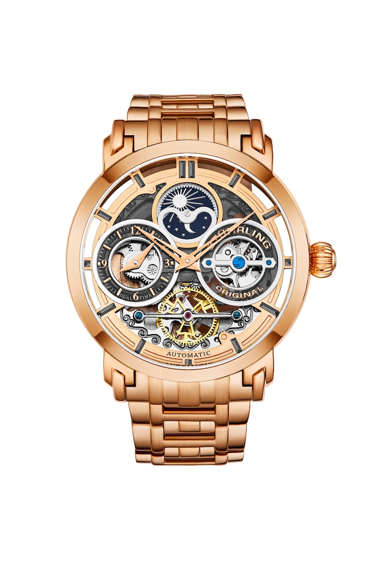 - dual time Rezistenta la apa: 5 atm Cadran Material geam: cristal mineral Tip citire cadran: linii Carcasa Forma carcasa: rotunda Material carcasa: inox Culoare carcasa: auriu rose Diametru carcasa: 46 mm Curea/bratara Tip: bratara Material curea/bratara: inox Culoare curea/bratara: auriu rose