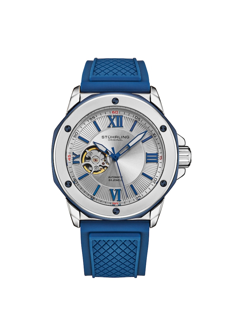 - geam krysterna Cadran Material geam: cristal mineral Tip citire cadran: cifre romane Carcasa Forma carcasa: rotunda Material carcasa: inox Culoare carcasa: argintiu Curea/bratara Tip: curea Material curea/bratara: silicon Culoare curea/bratara: albastru