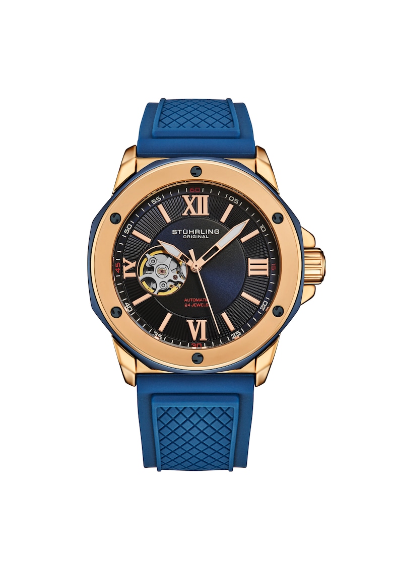 - geam krysterna Cadran Material geam: cristal mineral Tip citire cadran: cifre romane Carcasa Forma carcasa: rotunda Material carcasa: inox Culoare carcasa: auriu rose Diametru carcasa: 44 mm Curea/bratara Tip: curea Material curea/bratara: silicon Culoare curea/bratara: teal