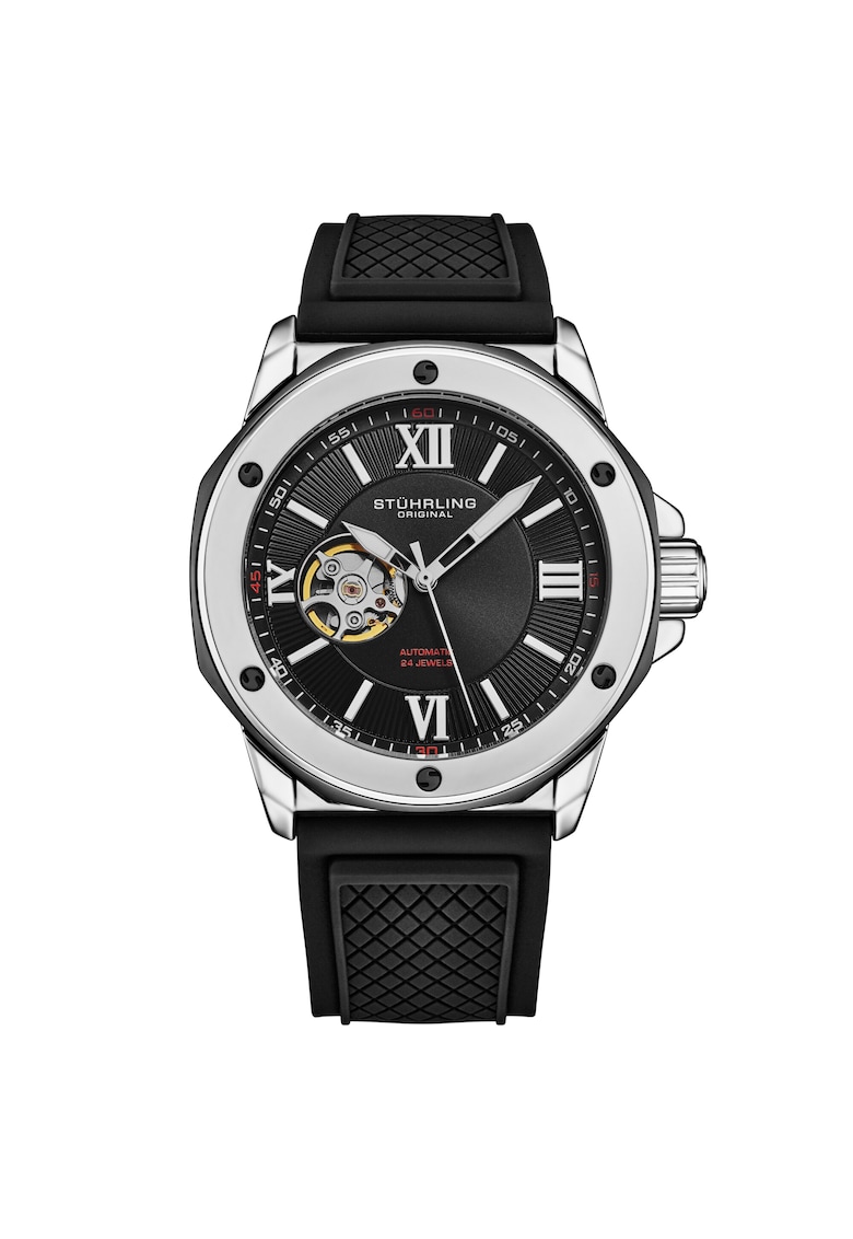 - geam krysterna Cadran Material geam: cristal mineral Tip citire cadran: cifre romane Carcasa Forma carcasa: rotunda Material carcasa: inox Culoare carcasa: argintiu Curea/bratara Tip: curea Material curea/bratara: silicon Culoare curea/bratara: negru