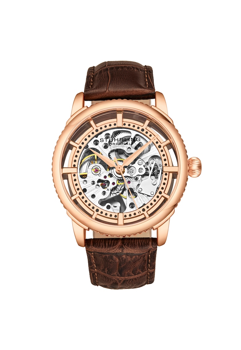 - auriu rose Carcasa Forma carcasa: rotunda Material carcasa: inox Culoare carcasa: auriu rose Diametru carcasa: 41 mm Curea/bratara Tip: curea Material curea/bratara: piele naturala Culoare curea/bratara: maro