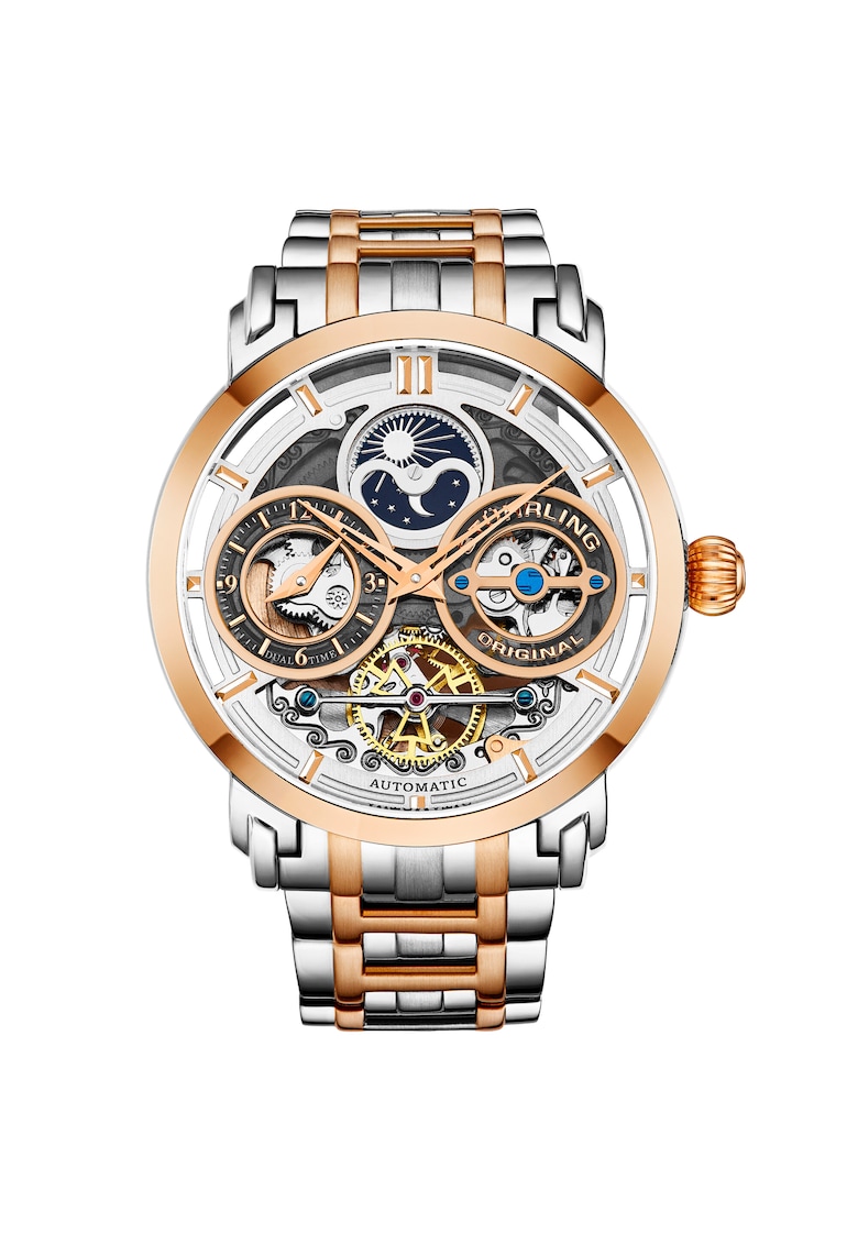 - dual time Rezistenta la apa: 5 atm Cadran Material geam: cristal mineral Culoare cadran: argintiu Tip citire cadran: linii Carcasa Forma carcasa: rotunda Material carcasa: inox Culoare carcasa: auriu rose Diametru carcasa: 46 mm Curea/bratara Tip: bratara Material curea/bratara: inox Culoare curea/bratara: auriu rose