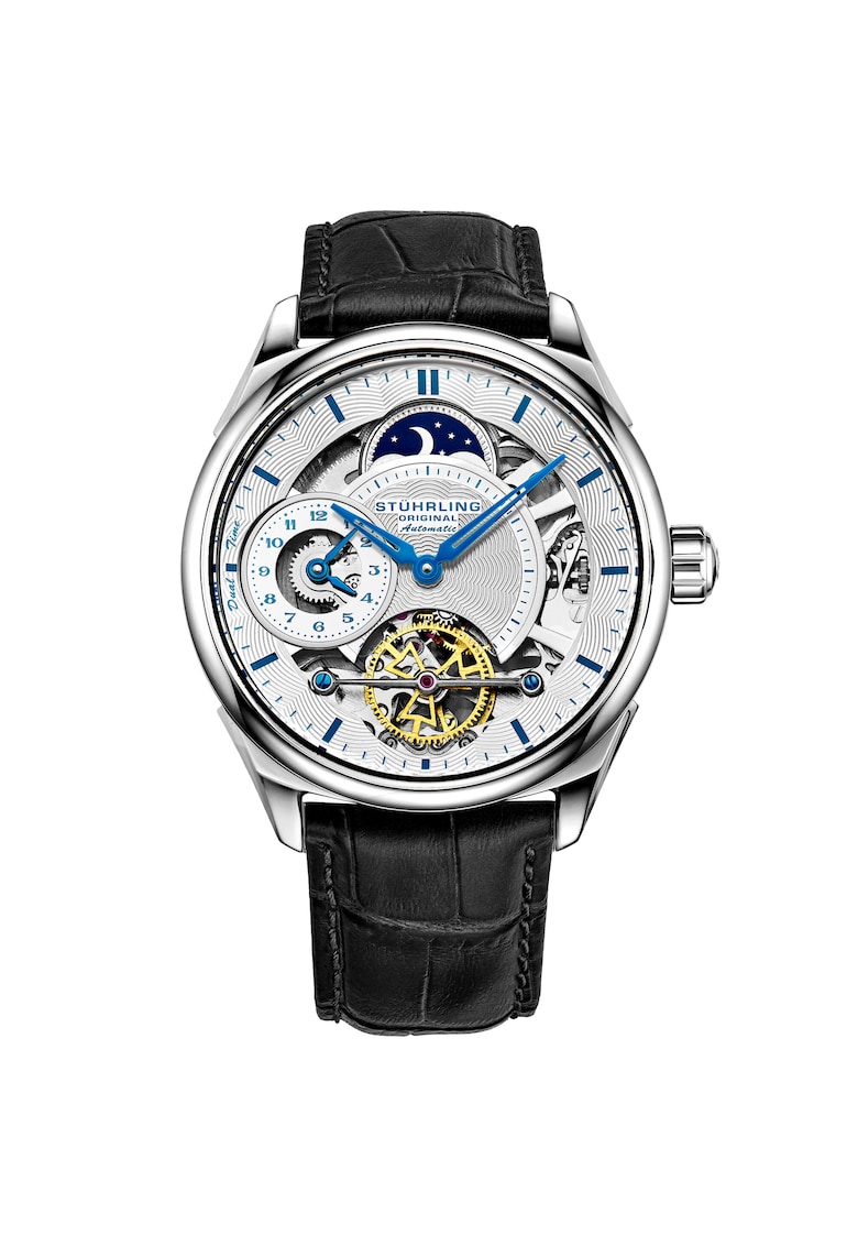 - cadran skeleton Cadran Material geam: cristal mineral Tip citire cadran: linii Carcasa Forma carcasa: rotunda Material carcasa: inox Culoare carcasa: argintiu Curea/bratara Tip: curea Material curea/bratara: piele naturala Culoare curea/bratara: negru