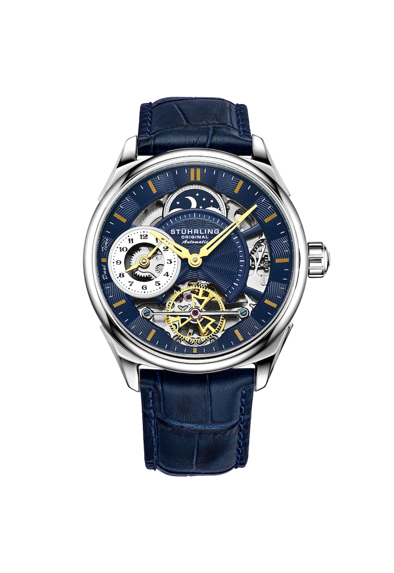 - dual time Rezistenta la apa: 5 atm Detalii: mecanism vizibil Cadran Material geam: cristal mineral Culoare cadran: albastru Carcasa Forma carcasa: rotunda Material carcasa: inox Culoare carcasa: argintiu Diametru carcasa: 42 mm Curea/bratara Tip: curea Material curea/bratara: piele naturala Culoare curea/bratara: albastru