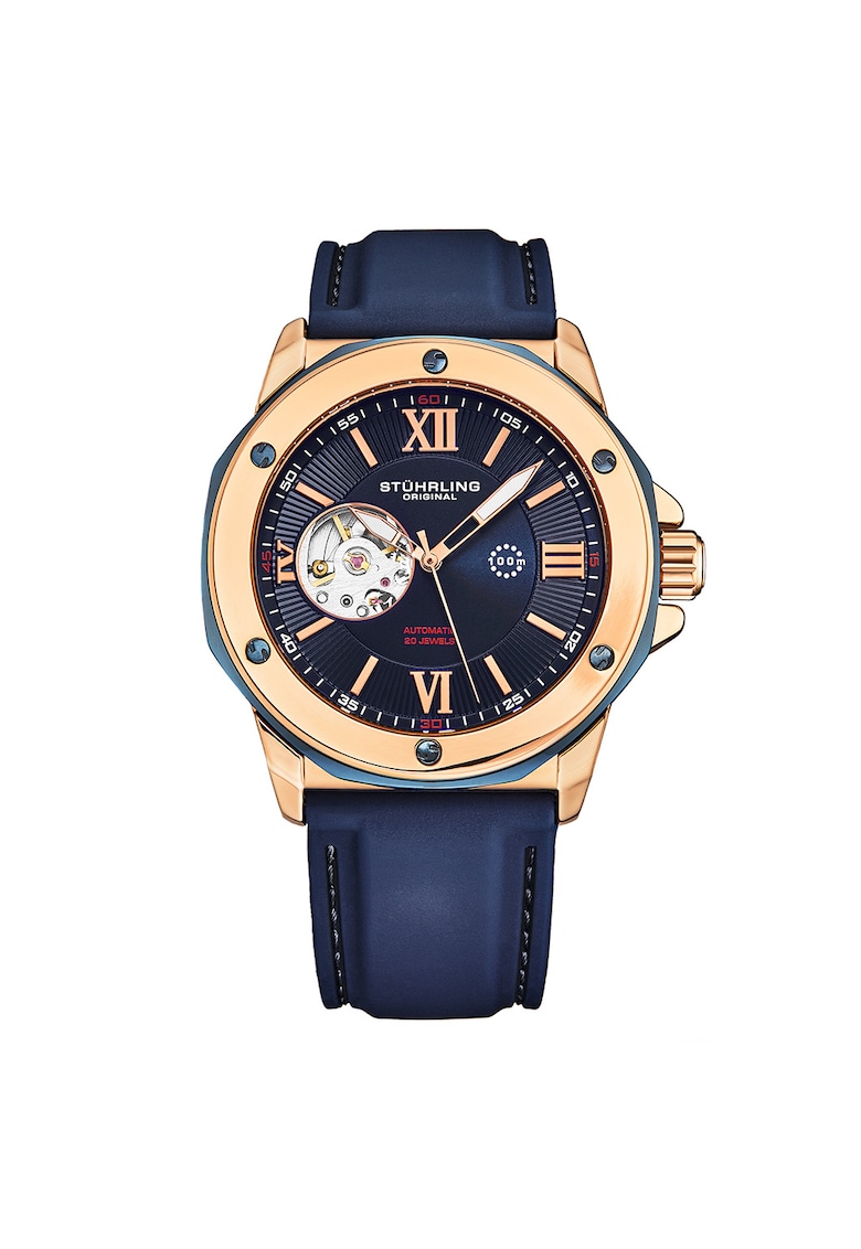 - secunda Rezistenta la apa: 10 atm Detalii: geam krysterna Cadran Material geam: cristal mineral Culoare cadran: albastru Carcasa Forma carcasa: rotunda Material carcasa: inox Culoare carcasa: auriu rose Diametru carcasa: 44 mm Curea/bratara Tip: curea Material curea/bratara: silicon Culoare curea/bratara: albastru