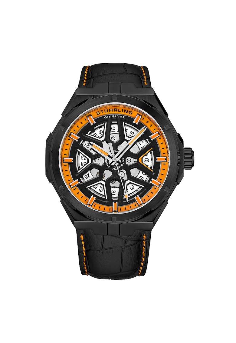 - portocaliu Carcasa Forma carcasa: rotunda Material carcasa: inox Culoare carcasa: negru Diametru carcasa: 41 mm Curea/bratara Tip: curea Material curea/bratara: piele naturala Culoare curea/bratara: negru